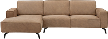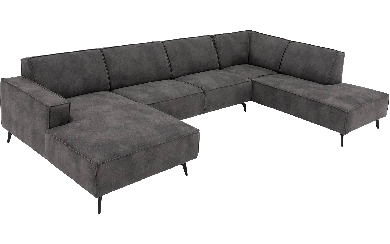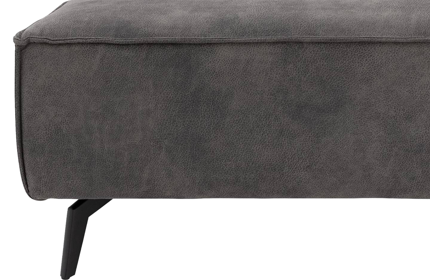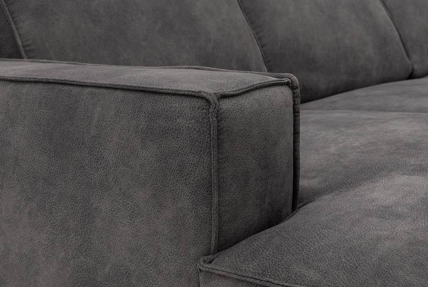 Door de combinatie van de zachte microvezelstof en het zwarte metalen onderstel krijgt deze hoekbank een modern karakter. Het donkergrijze kleurenpalet past in verschillende interieurstijlen en combineert makkelijk met jouw bestaande inrichting.