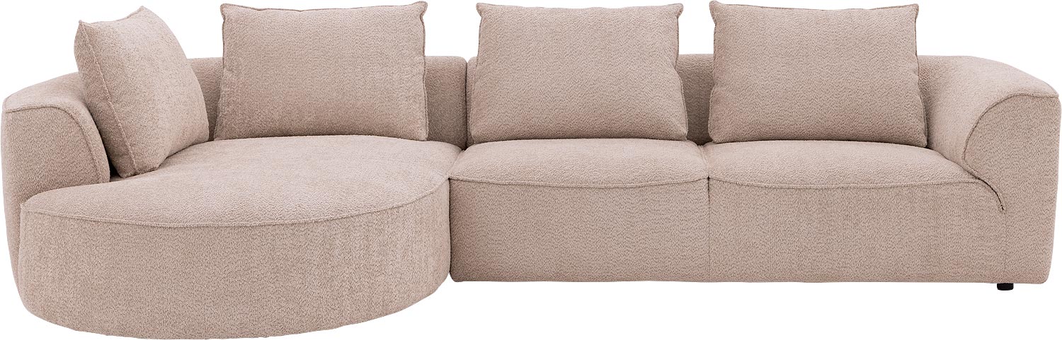 Door de combinatie van de zachte microvezelstof en het zwarte metalen onderstel krijgt deze hoekbank een modern karakter. Het donkergrijze kleurenpalet past in verschillende interieurstijlen en combineert makkelijk met jouw bestaande inrichting.